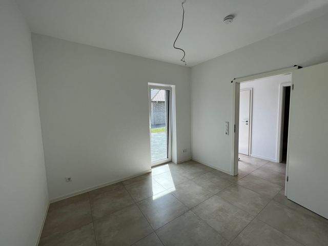 Die Doppelhaushälften verfügen über 85 m² Wohnfläche sowie einen Carport mit Geräteraum und eine Terrasse. Im Erdgeschoss befinden sich ein Schlafzimmer, ein Gäste-/Kinderzimmer, ein Gäste-WC, ein Bad mit ebenerdiger Dusche und eine großzügige Wohnraumküche mit einem Zugang zur Terrasse. Das Bad und Gäste-WC sind deckenhoch und hell mit hochwertigen Fliesen verfliest. Ein geräumiger Hauswirtschaftsraum bietet Ihnen reichlich Abstellfläche sowie die notwendigen Anschlüsse für die Waschmaschine und Trockner. Der Dachboden bietet Ihnen zusätzliche Abstellfläche und viel Stauraum.